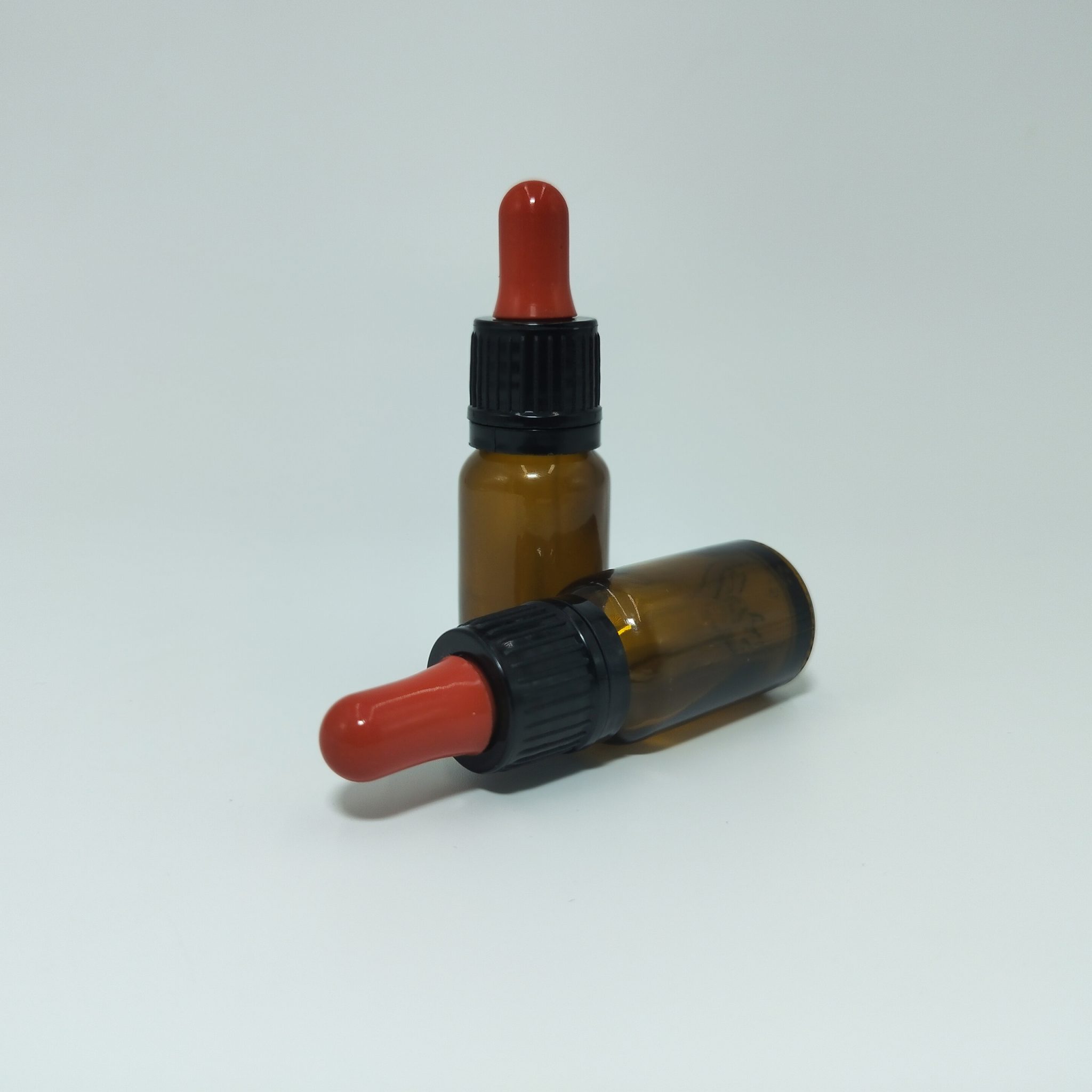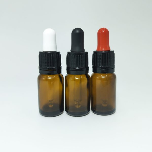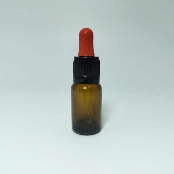 10ml Amber Dropper Bottle -Flat Black Cap with Seal & Red Teet